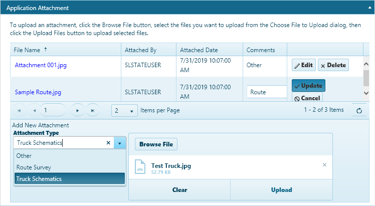 When the attached file appears in the table, click the Edit button to open the Comment options.