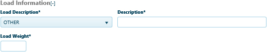 In the Load Information area, expand the Load Description drop-down and choose from the available options then enter the Load Weight in the field provided.