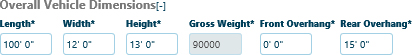 Enter the Overall Vehicle Dimensions in the fields provided.