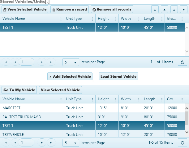 Select a vehicle from the lower table then click the Add Selected Vehicle button.