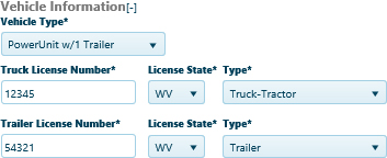 For both the Truck and Trailer, supply the License Number and the choose the state that issued the license then expand the Type drop-down and choose from the available options..