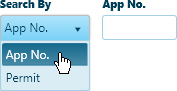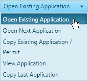 On the Find an Existing Application or Permit panel, expand the top drop-down and choose from the available options.