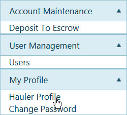 Navigate to the Hauler Profile screen by clicking the My Admin link then choosing Hauler Profile from the My Profile pane.