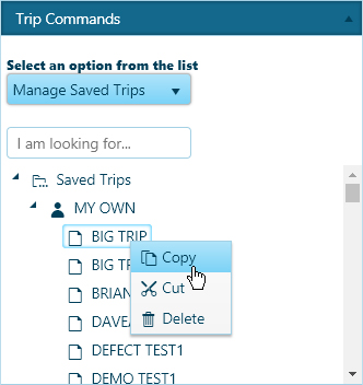 Right-click on the name of the desired trip then choose Copy or Cut from the context menu.