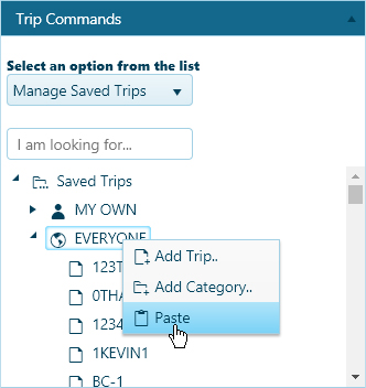 Right-click on the name of the folder into which you wish to place the chosen trip and choose Paste from the context menu.