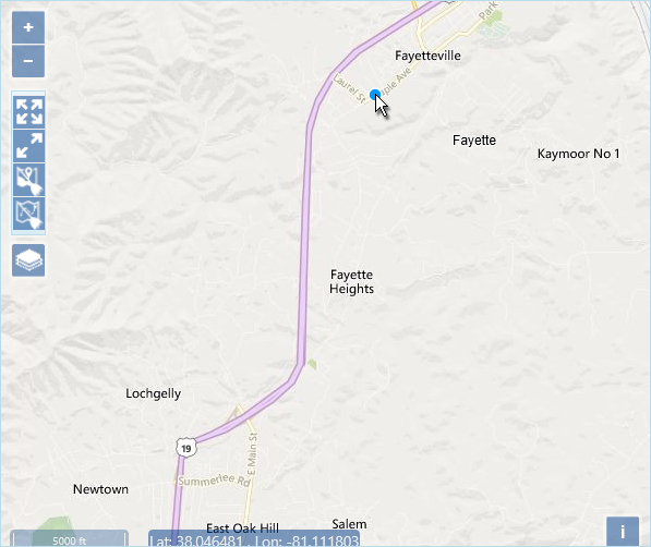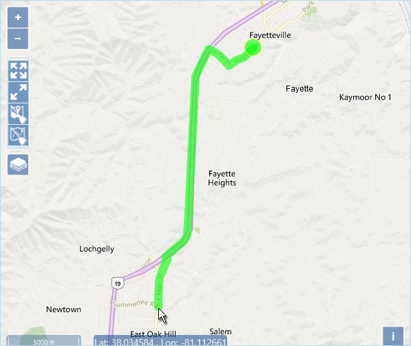 Use the Pick a Trip function to define a route by clicking to the map to select a point of origin, a destination, and if necessary, intermediate locations between the two.