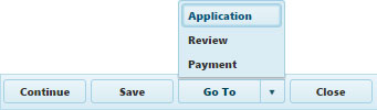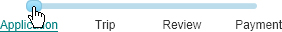 The Progress Bar shows the workflow for completing an application and provides a quick way to move from page to page. Click the link of or drag the slider to the page you wish to open.