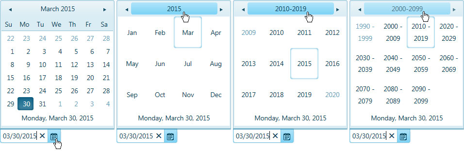 Click the desired year to set it on the Calendar pop-up.