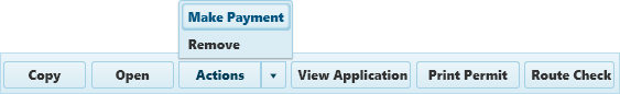 Payment – click this button to access the Payment page of the open application or permit